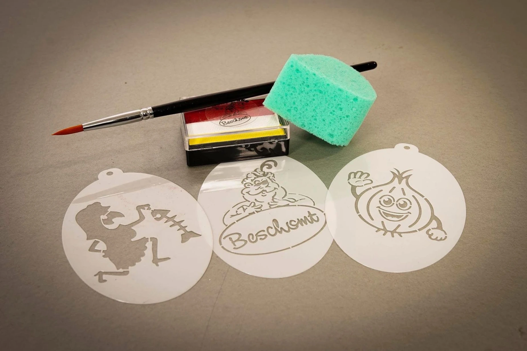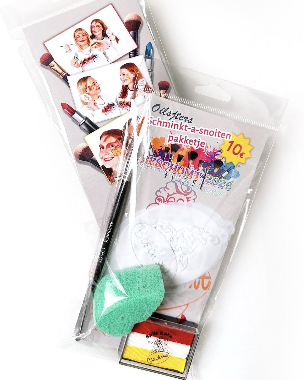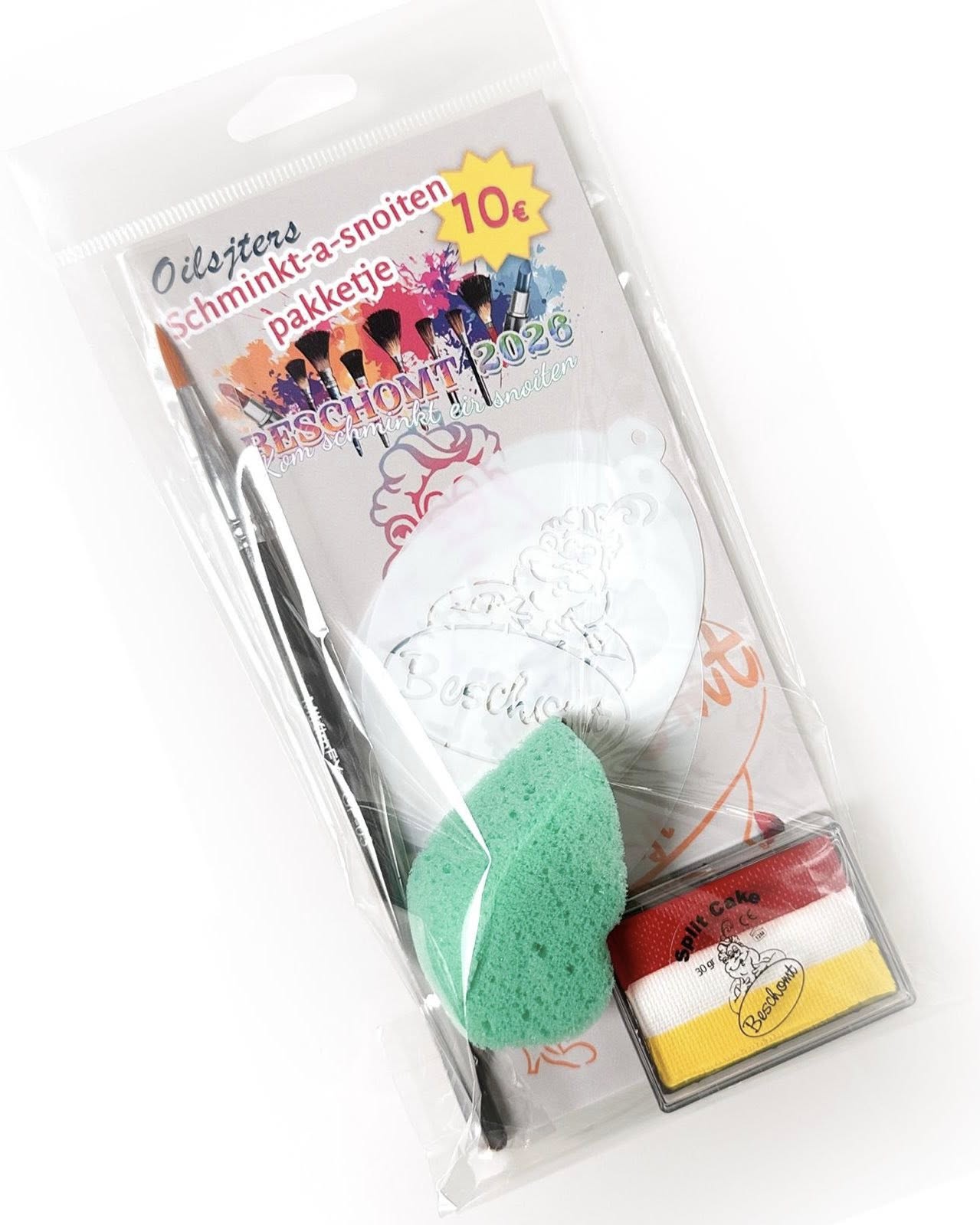 ·Zoekte nog een oplossink vér anne schmink vér mé carnaval? Beschomt zergt mé ‘t Oilsjters Schminkt-a-snoiten pakketje dat a fassade geriejd es vér fiejst en carnaval!Wa zitj er allemool in? Pensjiel, sponsken, sjablonen en schmink in onze Oilsjterse koleiren